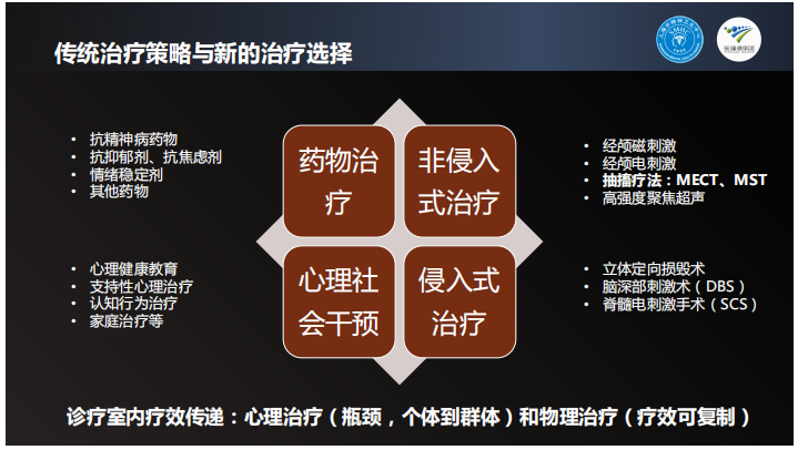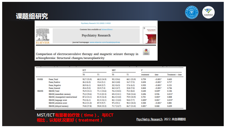 根據(jù)國(guó)內(nèi)外和上海市精神衛(wèi)生中心最新的研究證據(jù)顯示,MST安全性有保障,抗精神病作用有顯著的療效,與MECT比相比療效無(wú)差異,認(rèn)知狀況更好,耐受性好,脫落率低于MECT。