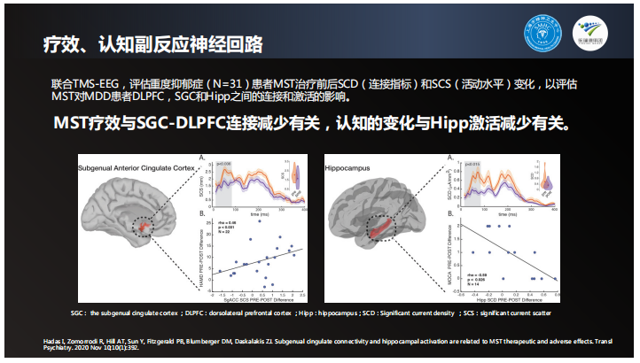 與MECT相比,MST刺激更聚焦、更具有靶向性。MECT由于電場(chǎng)分布彌散,同時(shí)作用于療效、認(rèn)知副反應(yīng)神經(jīng)回路,認(rèn)知副反應(yīng)大。MST更好的靶向和聚焦性,只針對(duì)療效神經(jīng)回路,避免作用于認(rèn)知副反應(yīng)神經(jīng)回路,減少認(rèn)知副反應(yīng)發(fā)生。
