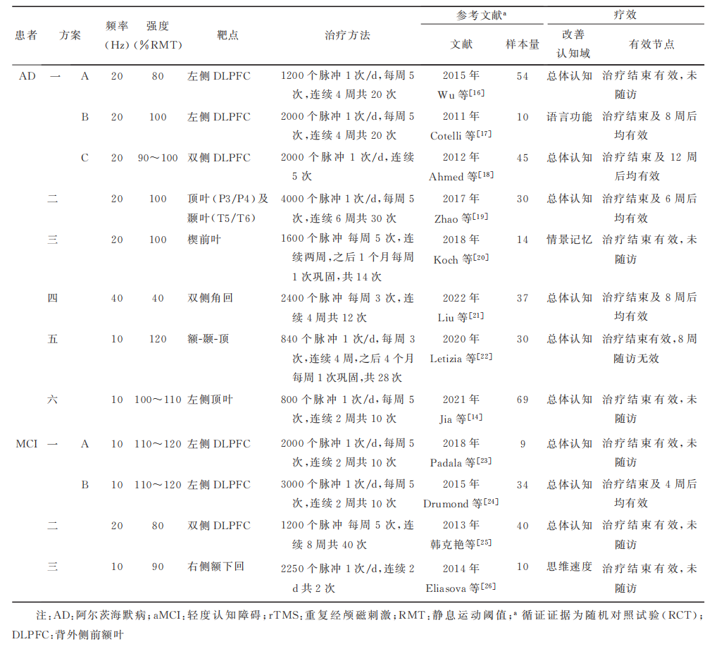 表1:AD和aMCI的rTMS治療方案