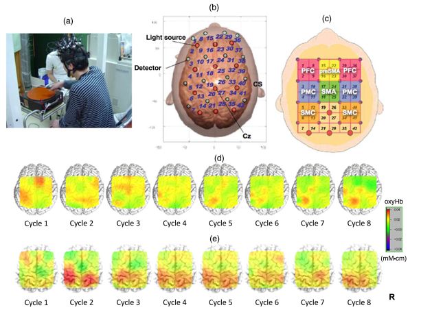 然而,由于在日常的情況下,大部分的動(dòng)作都是在坐位或站立的時(shí)候執(zhí)行的,由于fNIRS移動(dòng)方便,不受環(huán)境和運(yùn)動(dòng)體位的限制。所以,fNIRS對于運(yùn)動(dòng)學(xué)習(xí)的腦部監(jiān)測具有更加廣泛的意義。