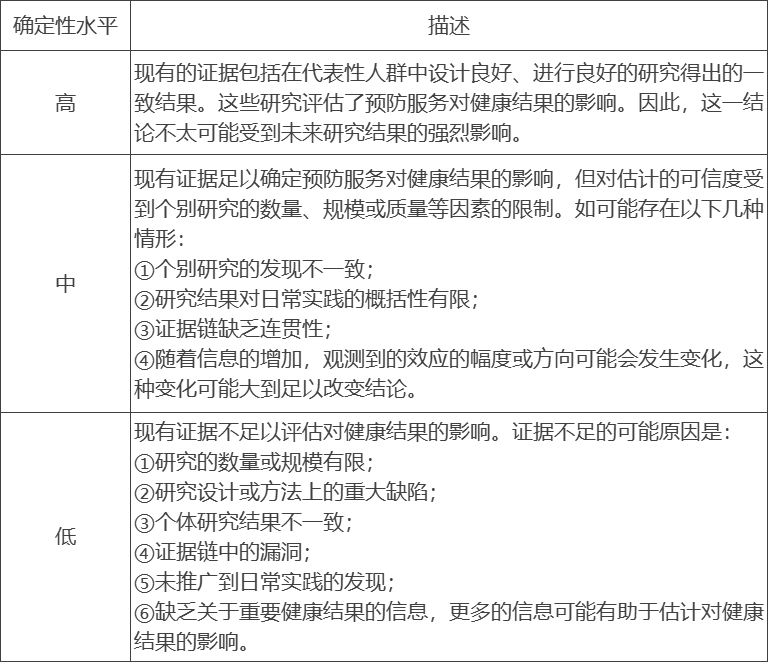 附表4,美國疾病控制和預(yù)防中心(CDC)的證據(jù)等級: