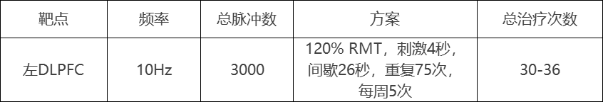 對于PTBI-HA共病嚴(yán)重抑郁癥患者,建議至少進行10次治療(間隔24小時和< 72小時),頻率10-20Hz, 每次2000-3000個脈沖,刺激強度取靜息運動閾值(RMT)的80-90%,刺激左DLPFC。