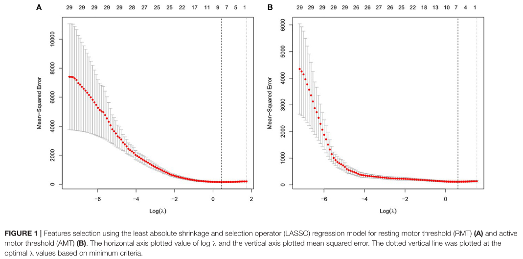 為了確認(rèn)自發(fā)性腦電圖振蕩與皮質(zhì)脊髓興奮性之間的關(guān)系,使用最小絕對(duì)收縮和選擇算子(LASSO)識(shí)別顯著特征,并對(duì)這些特征進(jìn)行相關(guān)性分析。
