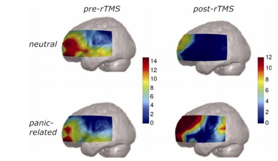 2、Dresler等人[2]的研究納入了1名驚恐障礙和共病抑郁癥患者,該患者接受了為期3周的左側(cè)前額葉皮質(zhì)高頻rTMS治療,在rTMS治療前后,研究通過(guò)fNIRS測(cè)量患者在執(zhí)行情緒Stroop任務(wù)中大腦皮層的[oxy-Hb]變化。測(cè)量結(jié)果表明,rTMS可能會(huì)調(diào)節(jié)驚恐患者與驚恐相關(guān)的前額葉腦功能障礙。并且它可以作為焦慮障礙的一種可能的治療選擇。
