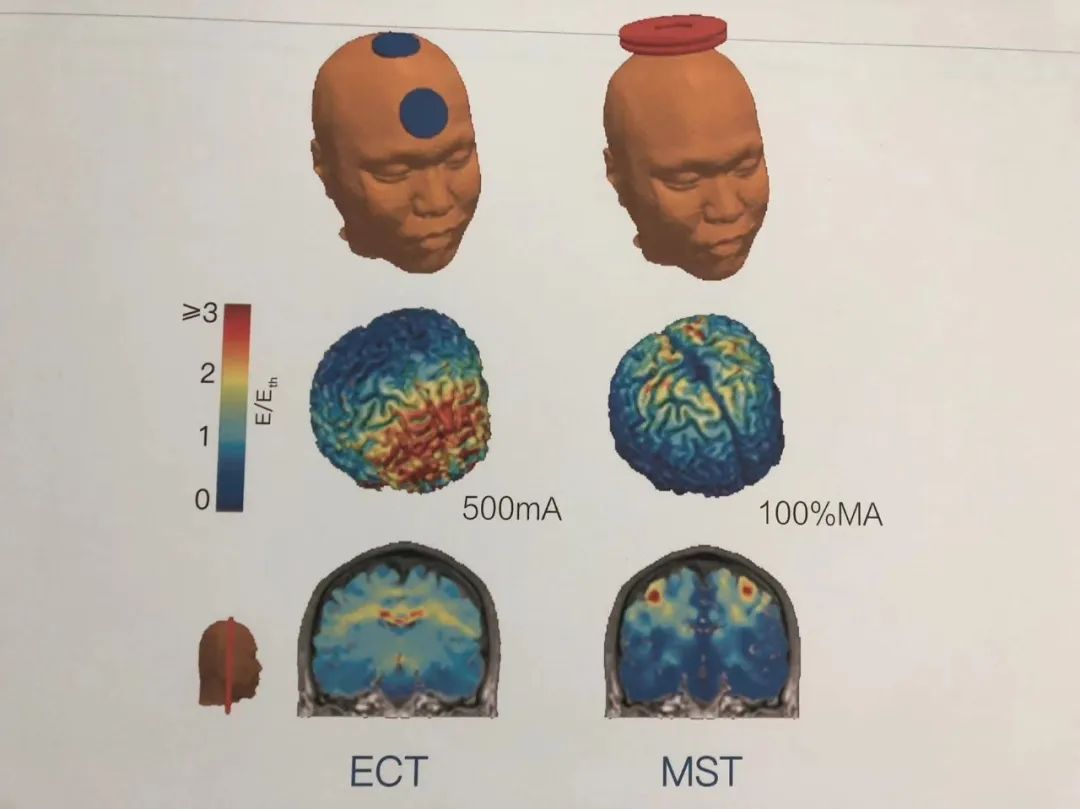 MST僅引起局部腦皮質(zhì)抽搐發(fā)作,MST激活腦區(qū)僅為ECT的1/10。(電休克治療科/劉娟)