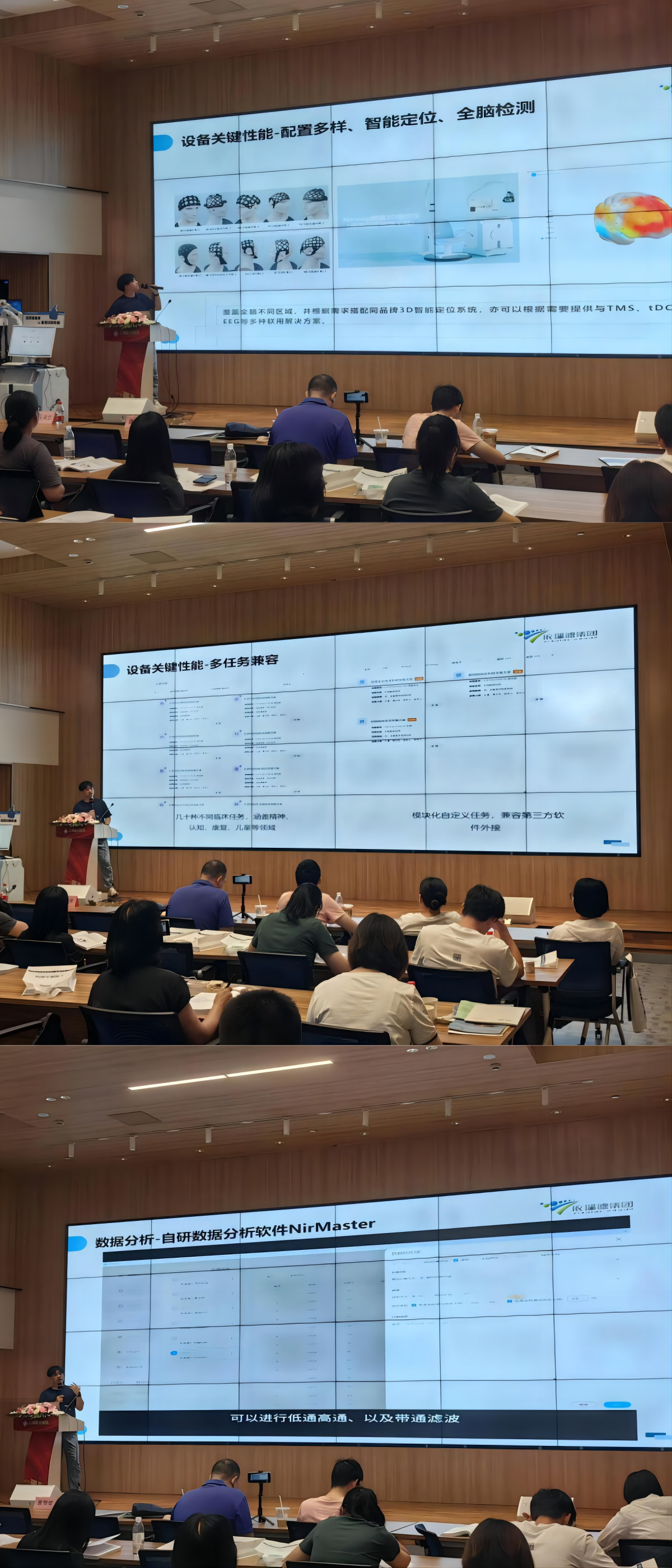 學(xué)習(xí)班上,依瑞德集團(tuán)的技術(shù)專家向與會(huì)者展示了近紅外腦功能成像(fNIRS)技術(shù)的關(guān)鍵性能指標(biāo)。詳細(xì)介紹了3D智能定位系統(tǒng)、fNIRS-TMS集成線圈,以及內(nèi)置的多種臨床任務(wù)、自研全中文一站式數(shù)據(jù)分析軟件。從硬件到軟件,全面展示了先進(jìn)fNIRS設(shè)備應(yīng)具備的特性。