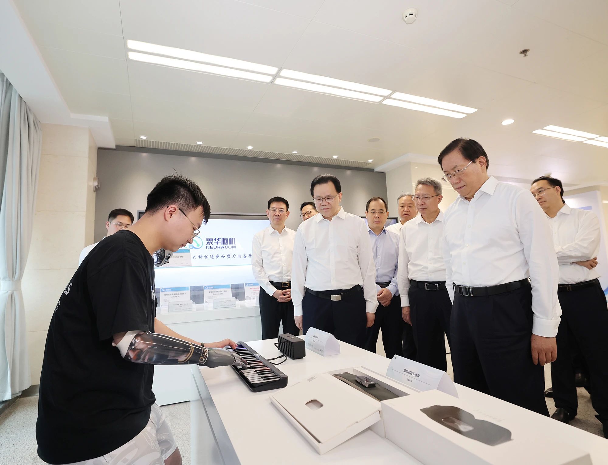 近日,華中科技大學同濟醫(yī)學院附屬同濟醫(yī)院在漢口院區(qū)、光谷院區(qū)正式啟用腦機接口咨詢評估門診。王忠林來到同濟醫(yī)院光谷院區(qū),察看腦機接口門診室、檢查治療室,參觀腦機接口等醫(yī)工交叉融合創(chuàng)新成果。院士專家、科技企業(yè)負責人現(xiàn)場演示了腦機接口技術在胃腸運動神經調控、眼控康復機器人、智能仿生手、高精度神經信號采集等領域的應用,介紹了開發(fā)研制的部分生物創(chuàng)新藥、診斷試劑和新型醫(yī)療器械等。王忠林邊看邊與大家交流,詳細詢問產品技術水平、應用成效等情況,感謝大家為推動高水平科技自立自強、守護人民群眾生命健康作出的積極貢獻,叮囑省、市有關部門加強對接服務,推動新技術、新設備、新藥品盡快落地、進入市場,讓患者享受到更加優(yōu)質、高效的醫(yī)療服務。