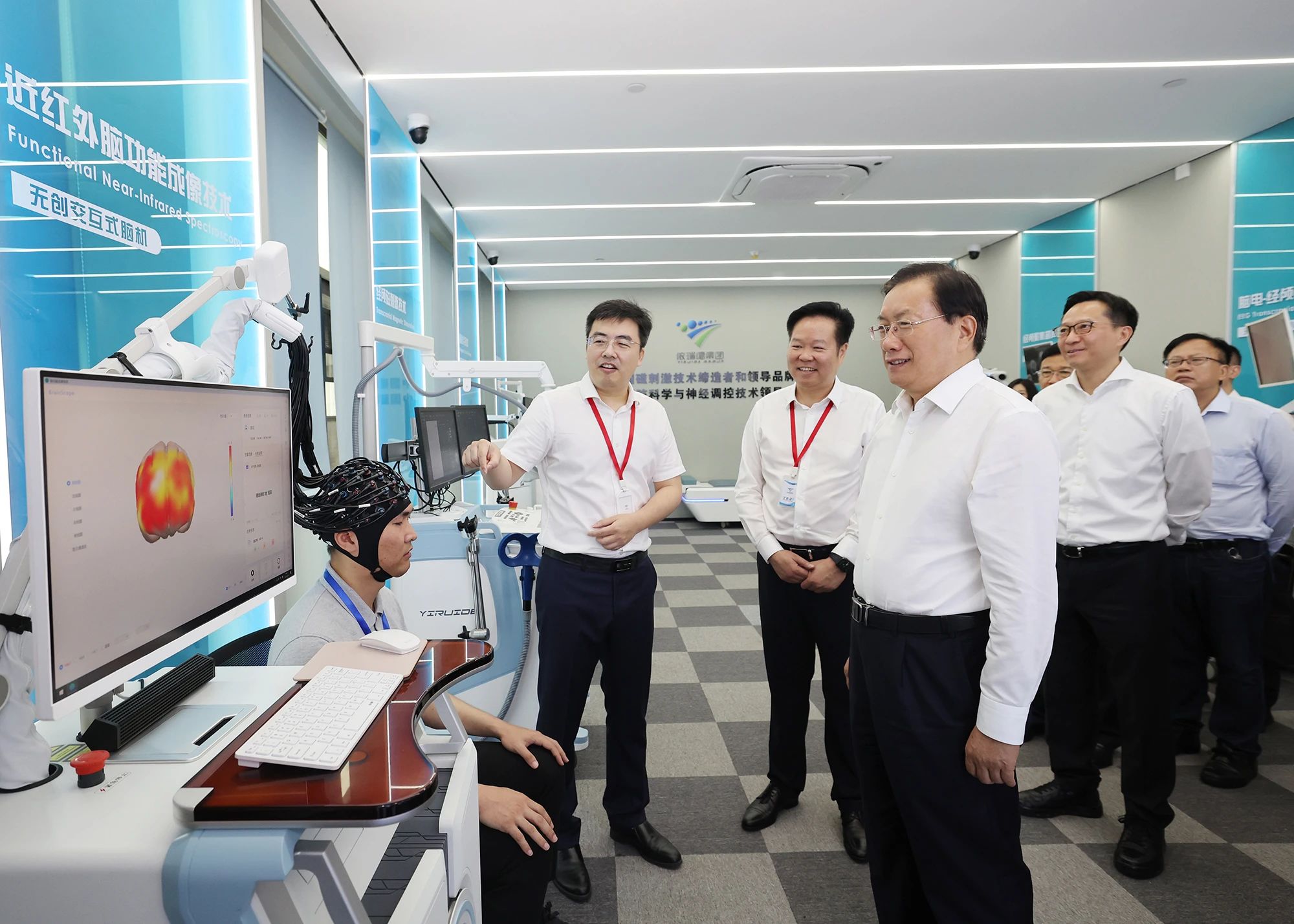 武漢依瑞德醫(yī)療設備新技術有限公司是國內無創(chuàng)腦機接口與神經調控技術領域的領軍企業(yè)。在企業(yè)產品展示體驗區(qū),王忠林察看近紅外腦功能成像、經顱磁刺激、經顱導航等技術設備演示,詳細了解企業(yè)技術創(chuàng)新和產品研發(fā)應用情況,勉勵企業(yè)堅持以創(chuàng)新為引領、以市場為導向,加強產品應用效果跟蹤評估,推出更多科技含量高、治療效果好的產品,助力湖北高端醫(yī)療裝備產業(yè)集聚式發(fā)展。