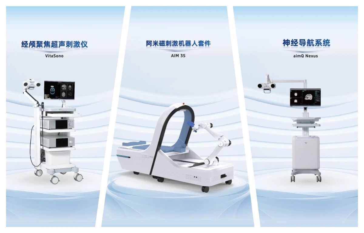 經(jīng)顱聚焦超聲刺激借相控陣技術(shù)穿透顱骨,實現(xiàn)深部腦區(qū)精準(zhǔn)聚焦;阿米3S以高靈敏度機(jī)械臂實現(xiàn)多靶點陣列刺激,結(jié)合影像精準(zhǔn)定制個體化治療;阿米Q Nexus用輕量化光學(xué)導(dǎo)航+視覺定位,1秒快速配準(zhǔn),搭配標(biāo)記筆降低使用門檻。