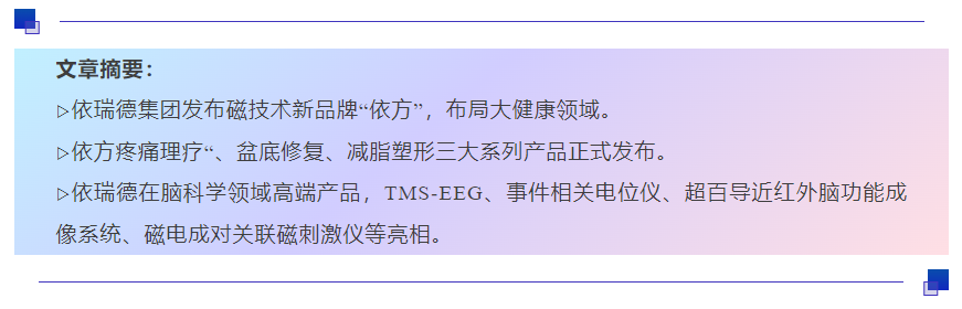 近年來,依瑞德集團以戰(zhàn)略家的遠見和拓荒者的勇氣,始終秉持著創(chuàng)新與突破的精神,將磁刺激技術(shù)的邊界不斷拓寬,讓磁力的魅力得以充分展現(xiàn)。